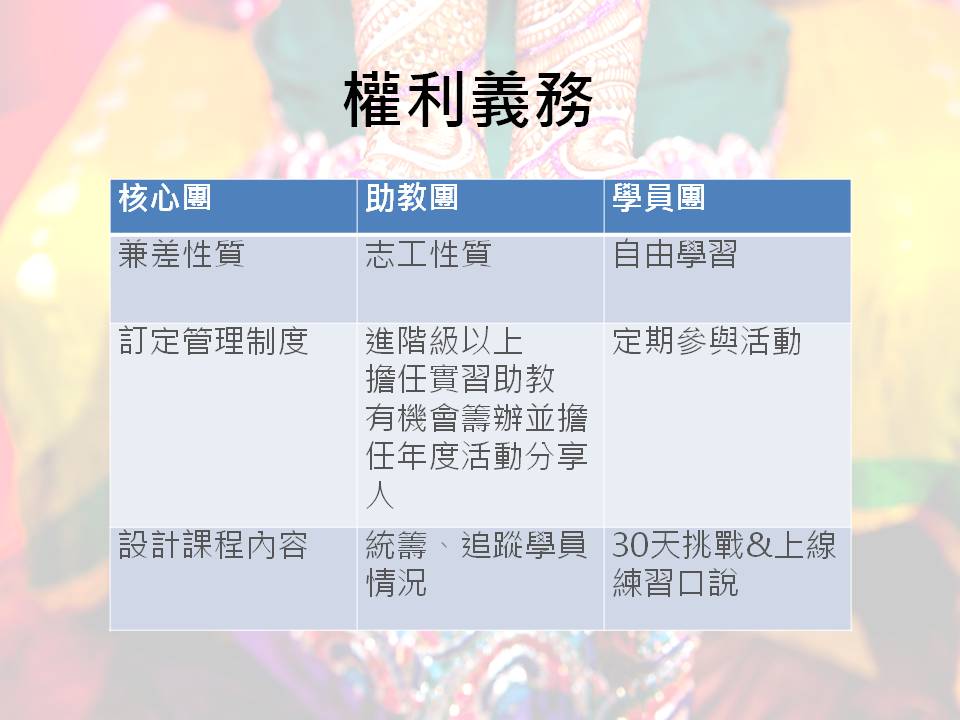目前瘋城部落國際大使團隊分成三個層級,核心團、助教團和學員團,相關細節大致如下說明。