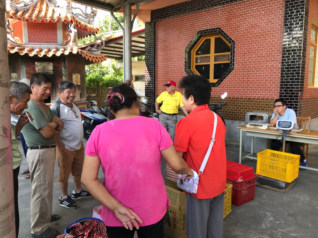 我喜歡看老人家忙進忙出,串門子似地問候聲,秤斤論兩地計較聲,互動照顧雞隻的窸窣聲,協力搬運祭祀大圓桌和長板凳子,合作佈置廟前廣場,好不熱鬧!