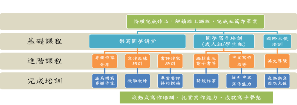 圓夢寫手幫助您培養成為講求策略的創作者新銳作家所需的技巧。此途徑的各個單元聚焦學習寫作、編輯,從素人晉升為新銳作家,結業後還可以成為特約撰稿或專業書評,並且參加自己的發表會,當中的每一個單元都著重撰寫及文章呈現方式的要領,此途徑將在您發展並實踐長期個人創作時圓滿達成,並讓您有機會運用所學的一切。