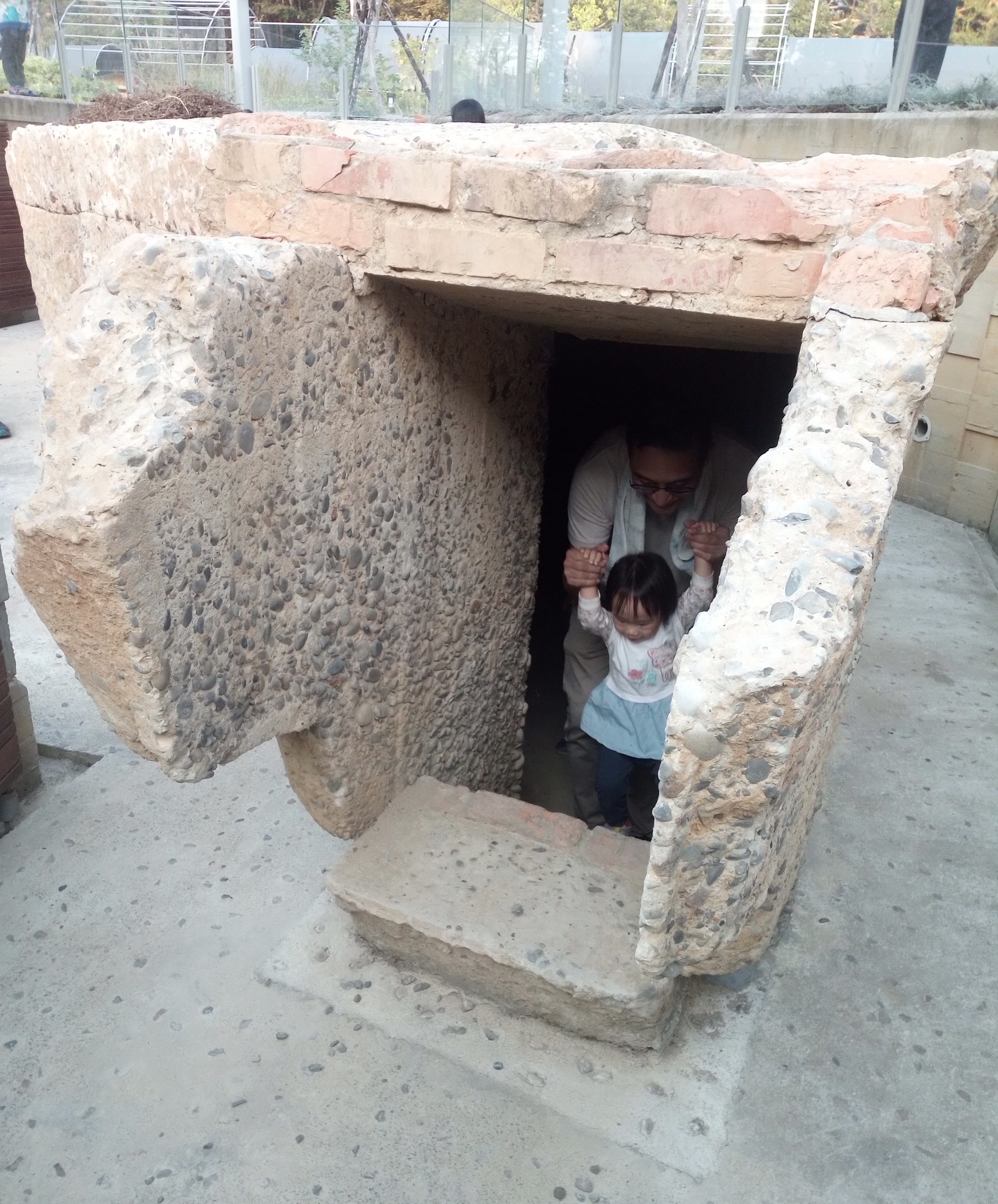 眷村の改修工事がきっかけで、大きな防空壕が発見されまし た。 防空壕の上には、幼稚園の駐車場があり、今では観光名所に なっています。この防空壕は日本統治時代に建てられたもの で、約50人を収容できます。 つまり、実は、眷村は旧日本兵舎の跡地に作られたのです。
