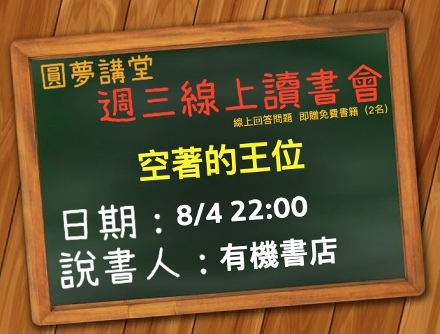 2021/08/04(三)晚上22:00~22:30,zoom線上