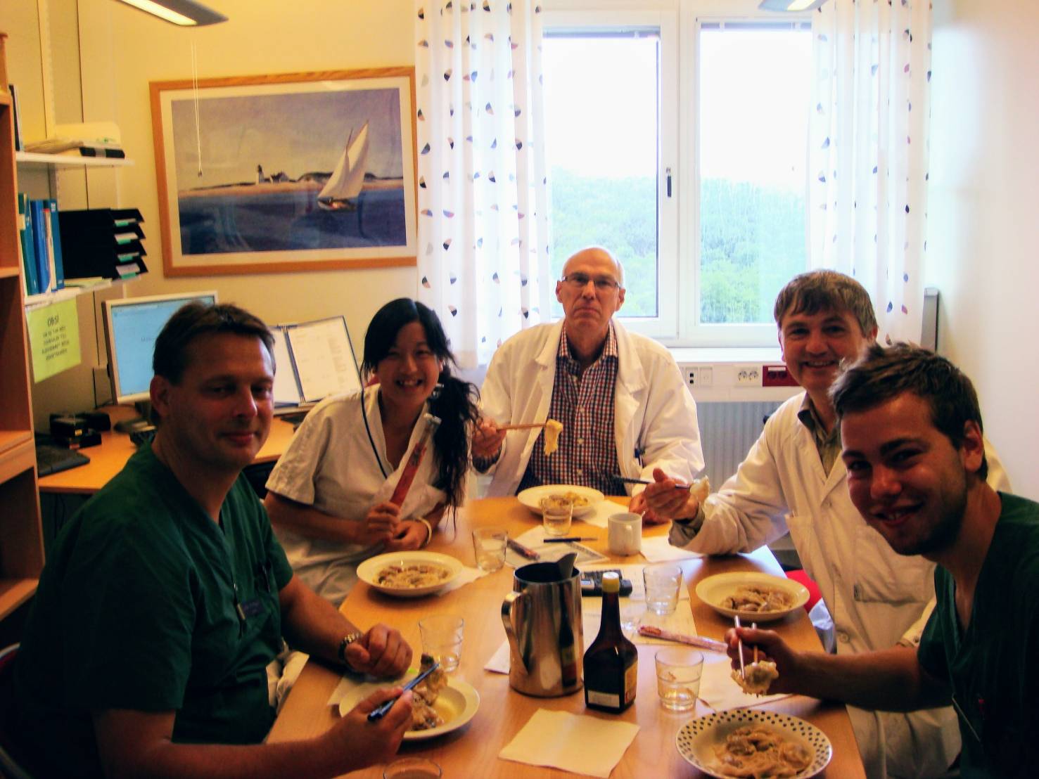 我見習的醫院是Salgrenska hospital,他們安排我在血管外科學習。病房不大,約有十幾張住院病床,單位裡總共有四位主治醫師和一位實習醫師。每天我跟著他們來回在會議室、刀房、病房,觀摩他們的工作,分享彼此的生活。