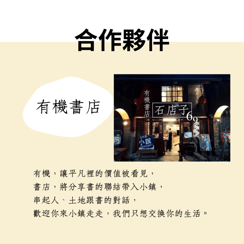 - 於全台十家有機書店購買書籍及小農產品,享有9折優惠