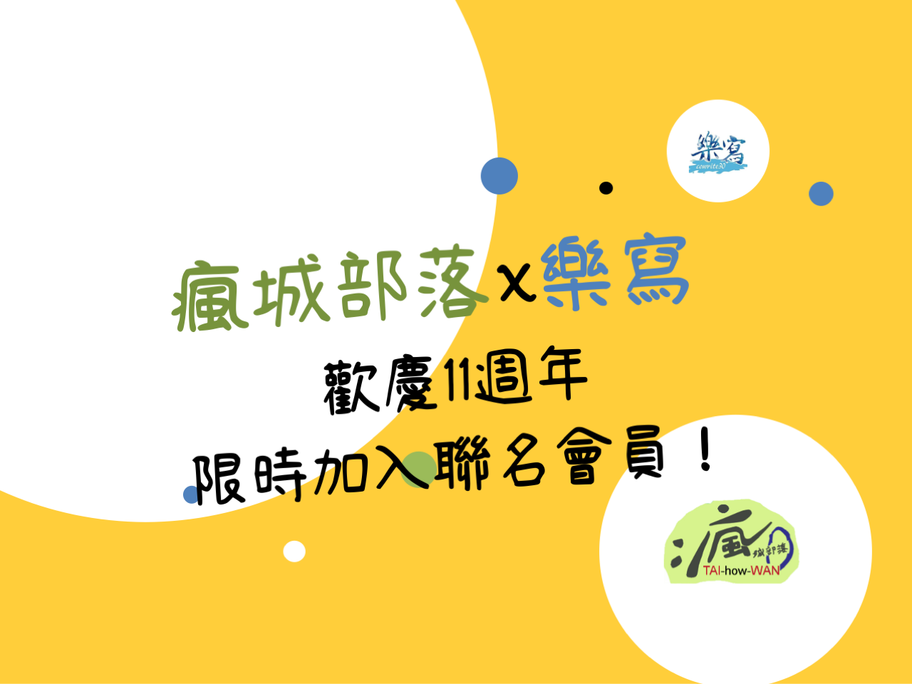 為了慶祝瘋城部落創辦11週年,我們推出史無前例的「瘋城x樂寫聯名會員卡」,這是一個給我們機會透過閱讀寫作自我提升,同時又能走出戶外參加藝文之旅,盡到一己之力的會員資格!