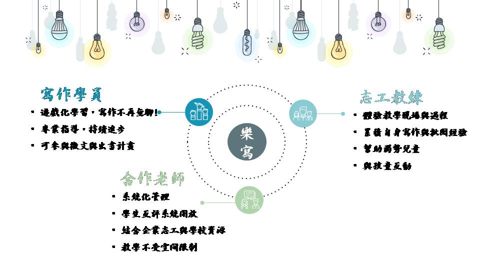 事實上,我們無法勉強志工們來做他們沒有意願的事,因此他們必須要有所學習、有所收穫。在整個寫作教育的設計裡,志工們其實也是在學習自己的表達力、寫作力,並讓自己在工作之餘有能力為這個社會做一些小小的事。