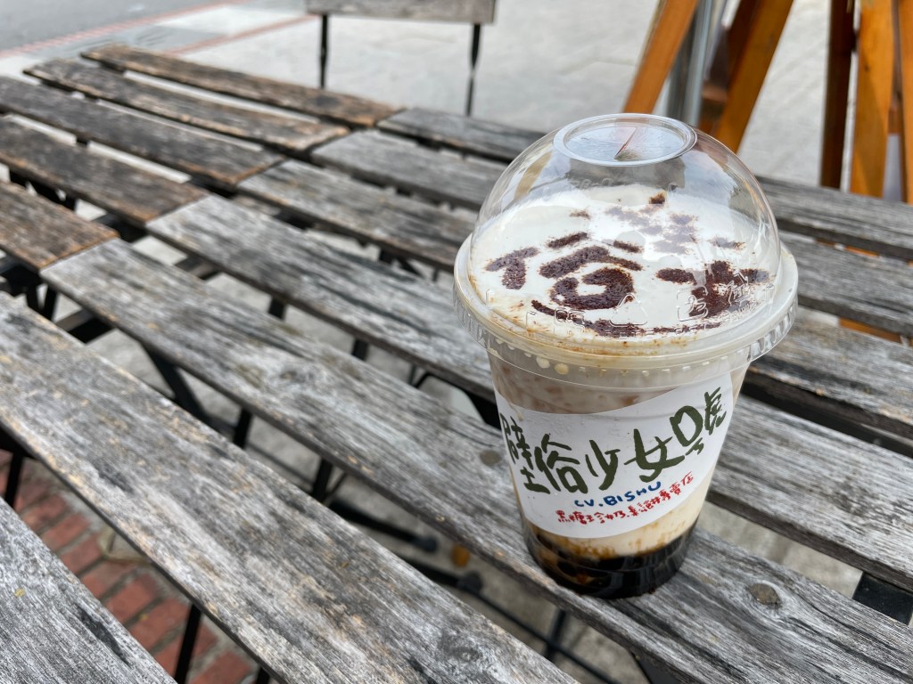 為了避開遊客人潮,我特地選了一個平常日的週一午後到訪菁寮老街。雖是週間,仍有不少遊客衝著「俗女養成記」而來。我也不免俗地來看看俗女主角陳嘉玲的家及劇中重要場景金德興中藥行,當然還要點上一杯「壁俗少女號」珍珠奶茶,在菁寮老街口拍一張到此一遊照片,跟風一下追劇打卡熱點。