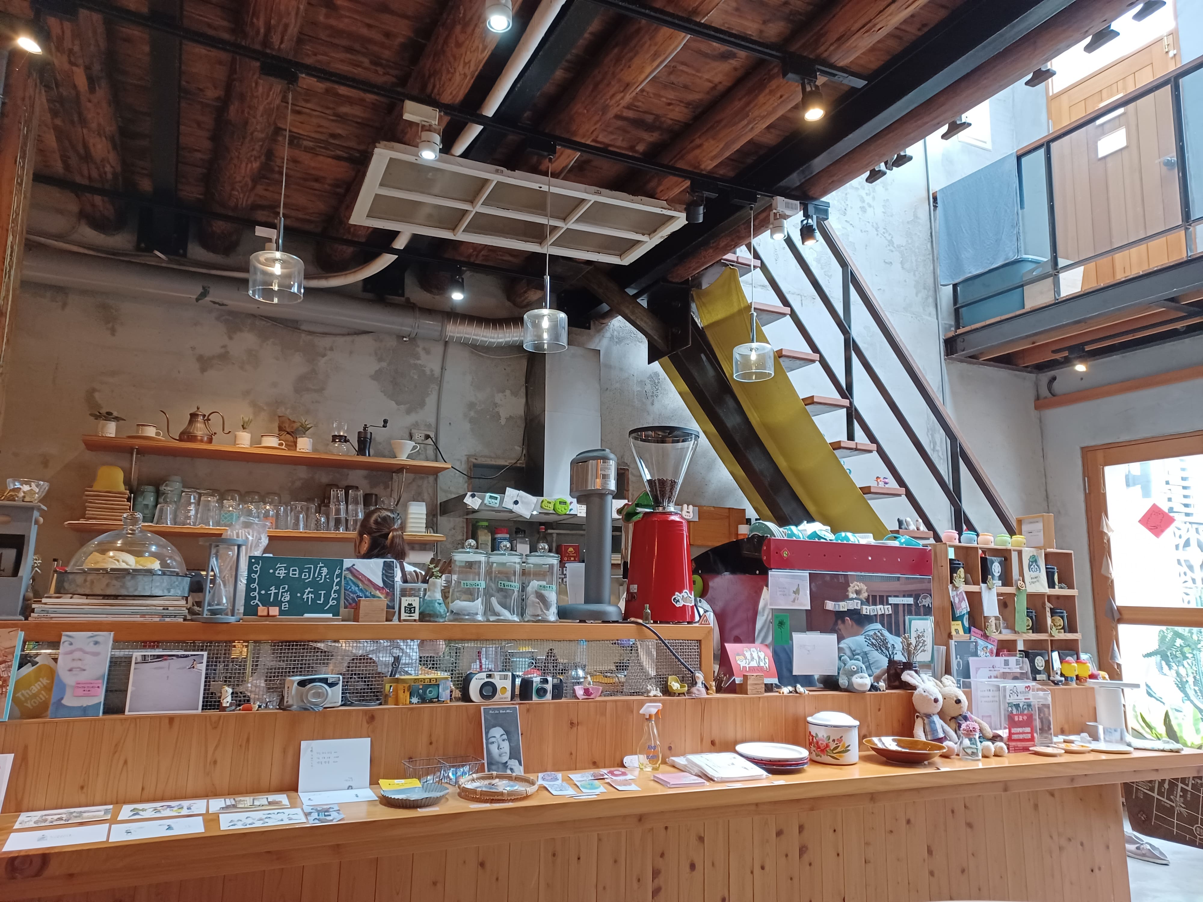 翻開菜單,琳瑯滿目的餐點讓人食指大動,五臟廟正在鬧飢荒,最後選了義式香料雞腿排套餐和一杯美式。原本以為今天母親節,店內應該會很多人,不想,只有少少幾組客人,這樣也好,剛好符合不喜嘈雜的心靈。工作人員正在開放式廚房裡忙進忙出,空氣中夾雜食物香與咖啡香,吧檯前面放了許多小擺飾,有相機、明信片和小卡,等待上餐的時間,可以先看看這些消磨時間。