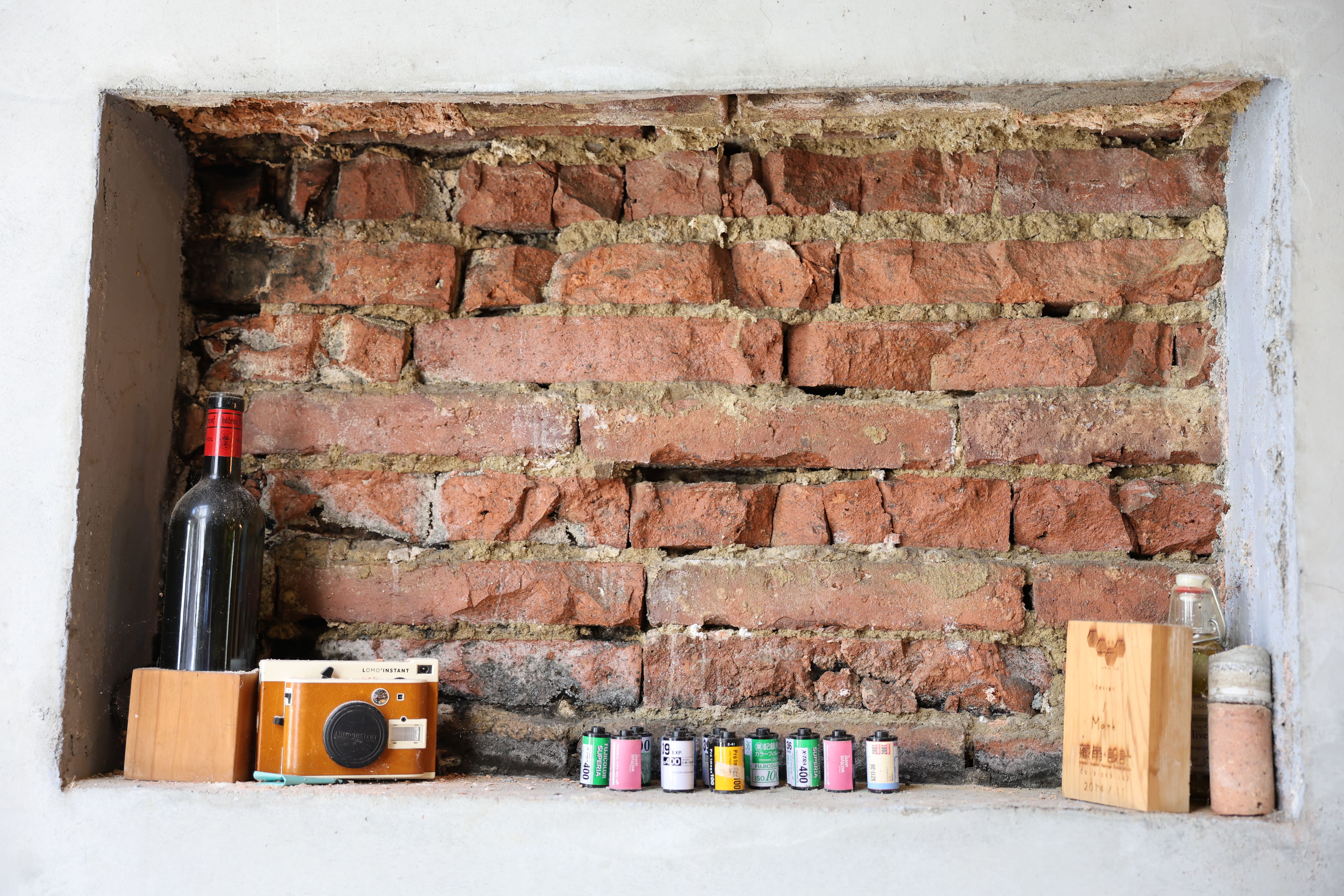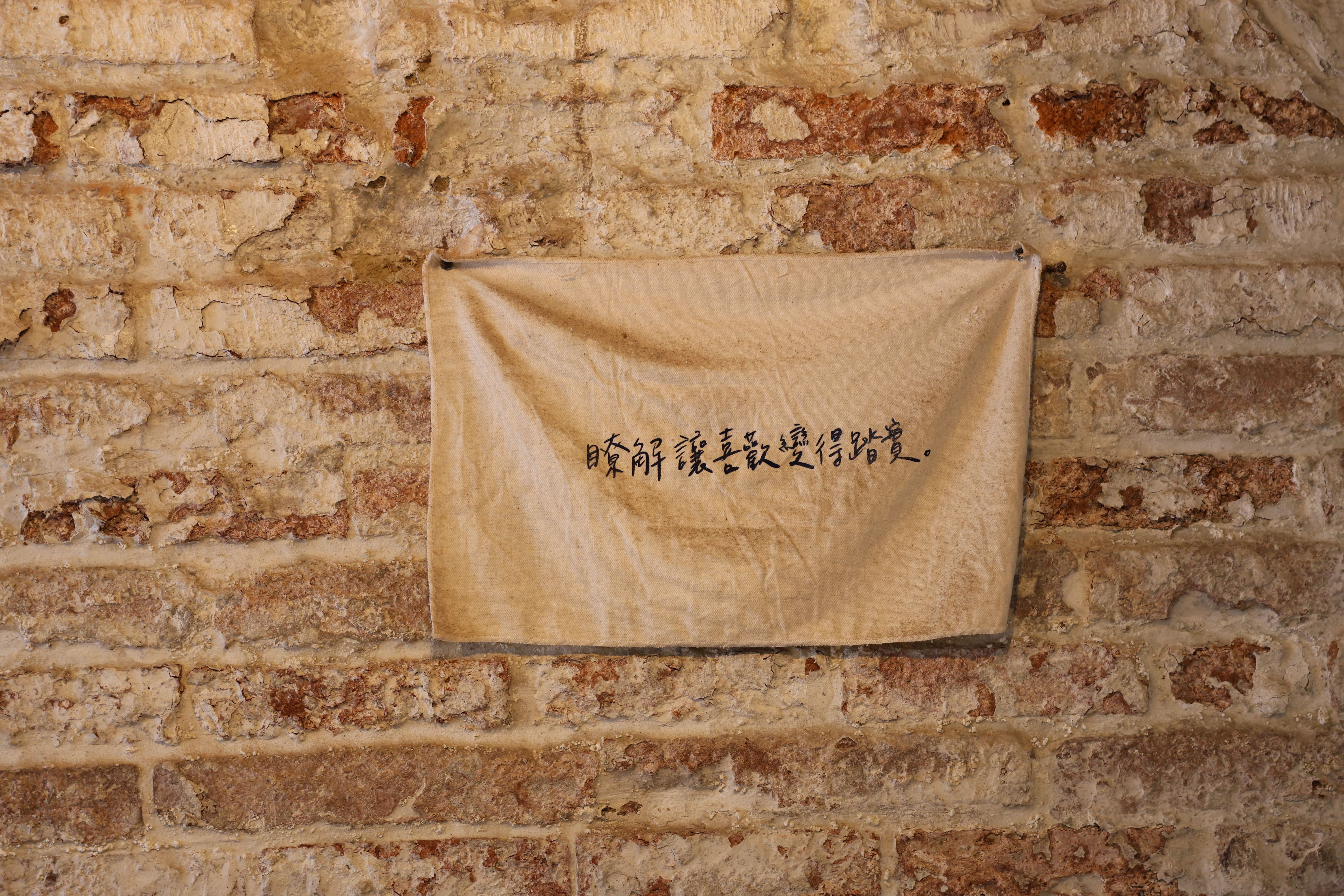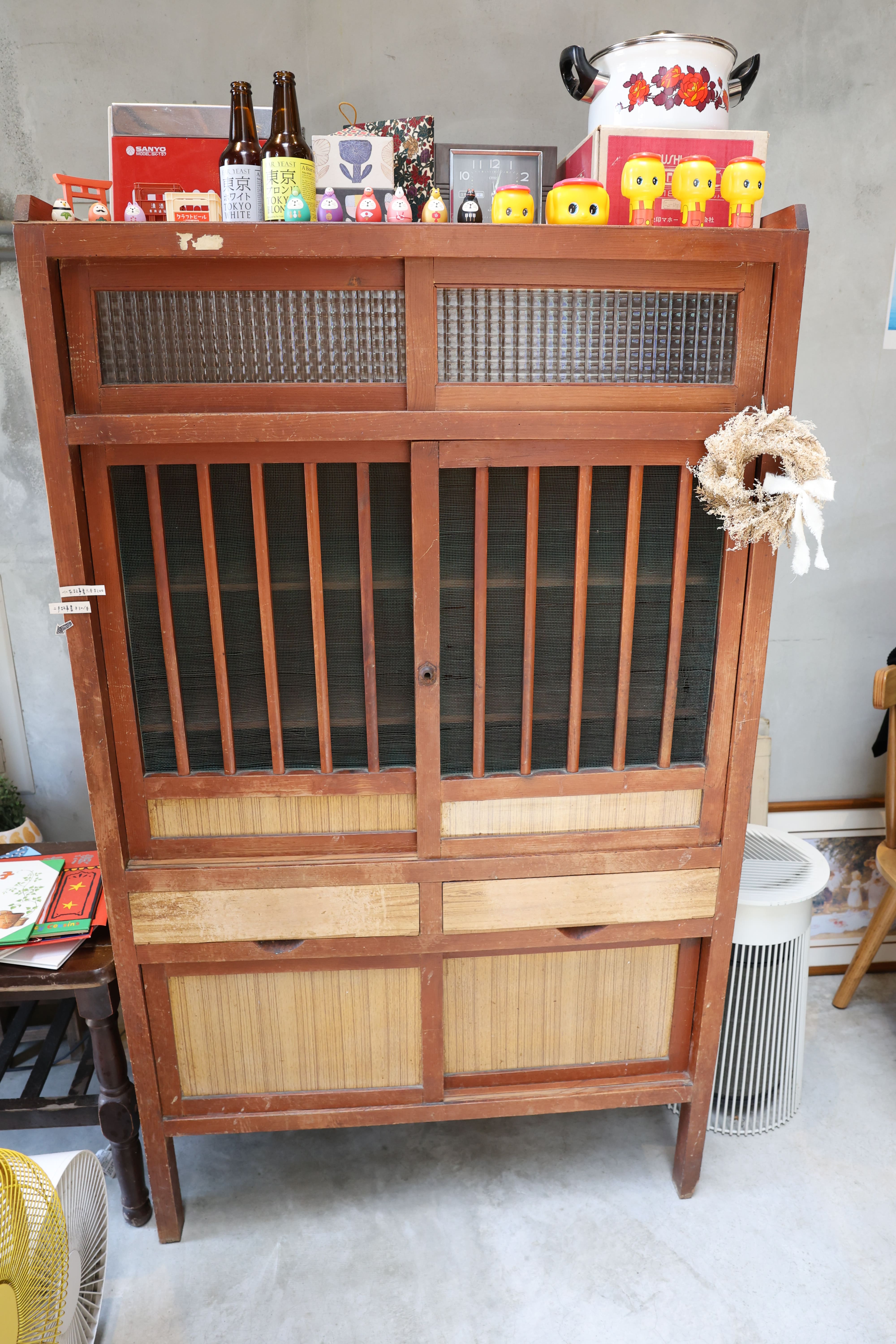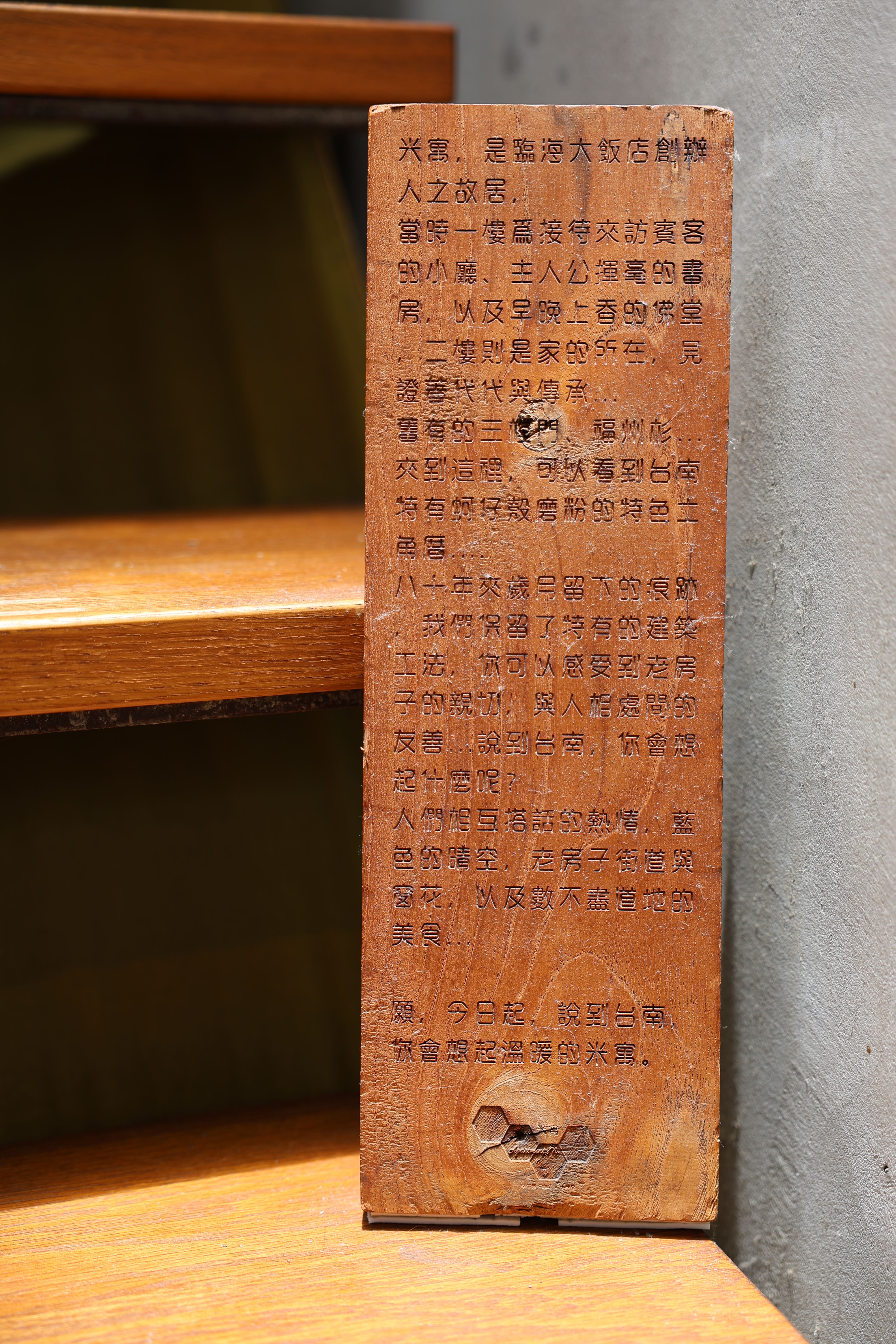 用完餐後,推薦參觀店內的空間擺設,一樓用餐區保留了一大面斑駁的紅磚牆,上頭貼了一個小布條:「瞭解讓喜歡變得踏實。」所謂的喜歡來自於深入的瞭解,不是一面之緣的三分鐘熱度,而是願意全然接納的心。二樓的樓梯轉角處,那只棕色櫥櫃吸引了我的目光,和彰化老宅的極為相似,只是尺寸略小了些,據家人說,這種櫥櫃通常是用好的木頭製成,不易蟲蛀也不會潮濕,適合用來儲放乾糧,即使上頭的顏色早已褪去,但功能性依舊不減。通往二樓的樓梯,店家沿著牆邊貼了許多這棟老屋整修的前後的照片,如果是喜愛老宅建築的你,是不容錯過的點之一。二樓的空間寬敞明亮,四周牆壁都是水泥砌牆,木色的天花板,很有輕工業裝潢的味道,面向街道的那扇窗保留了鐵窗花的設計,小巷安靜無人,再往外走一點,便是車水馬龍的大街了。