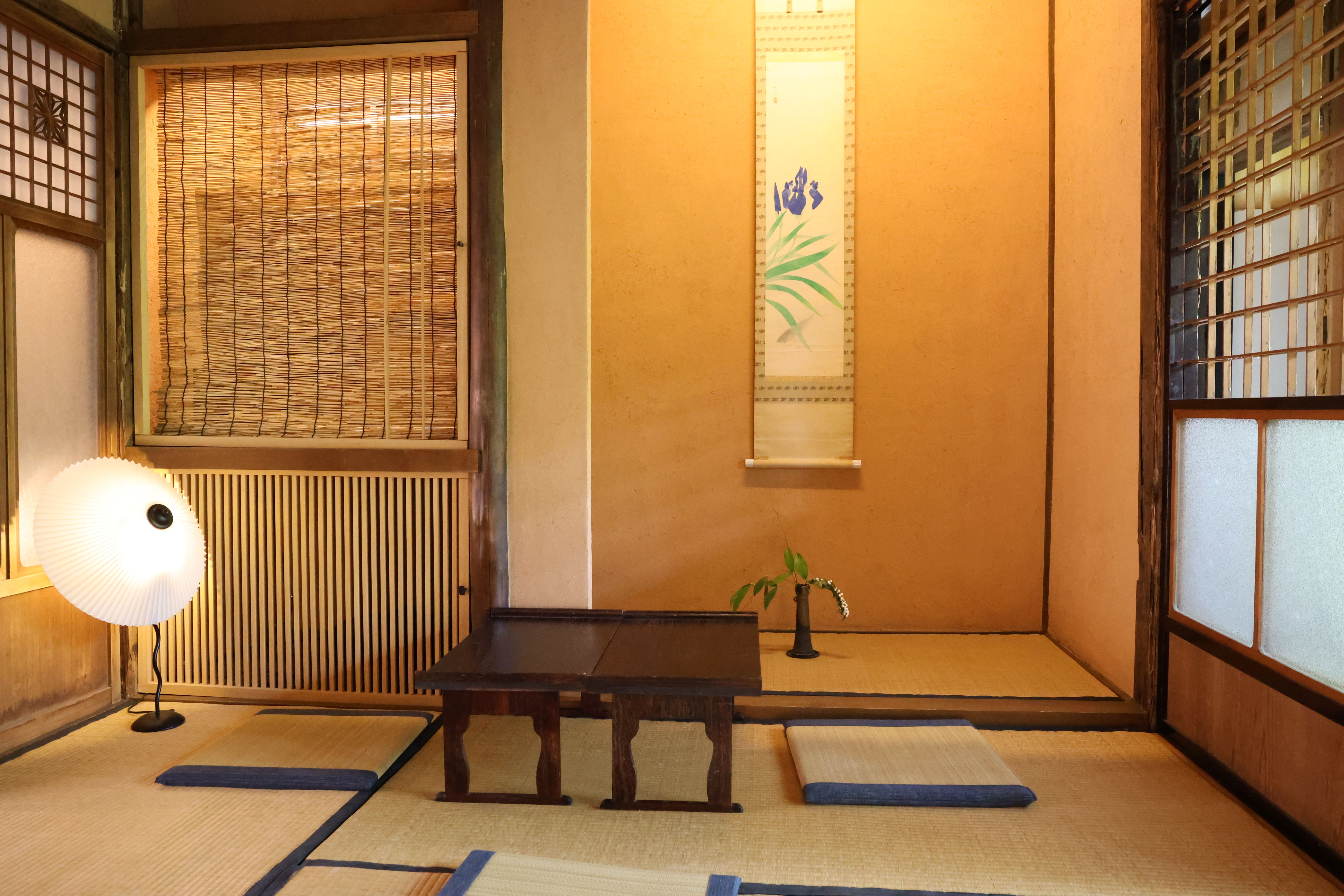 衛屋茶事是舊時日式傳統建築,修復時盡量保有原貌。進門時要脫鞋,榻榻米的地板上擺著日式矮桌鋪著坐墊,書架上擺著台日文化相關的中文書及日文書,房間一隅是日本女兒節的擺設,十分精緻。少數邊櫃擺著日式插花,並非鮮花的恣意綻放,而是一兩株細枝上的翠綠從沈穩的暗色花器躍了出來。