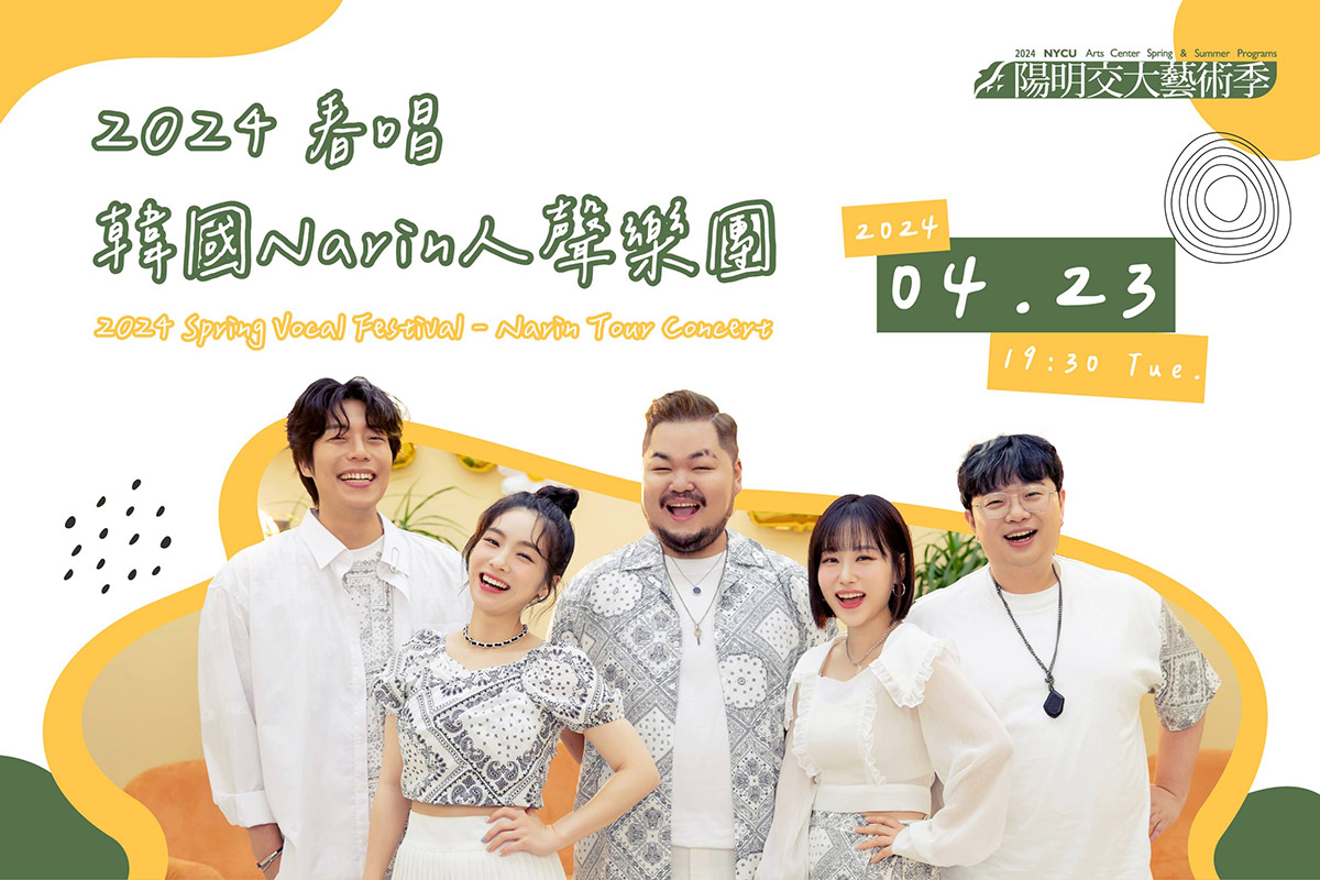 Narin是由五位韓國人組成的無伴奏合唱團,也就是大家可能聽說過的「阿卡貝拉」,團名──Narin是由「Na-ri-da」這個詩意的字詞演變而來,指的是「降臨之音」,而Narin也真的降臨至交大演藝廳啦!