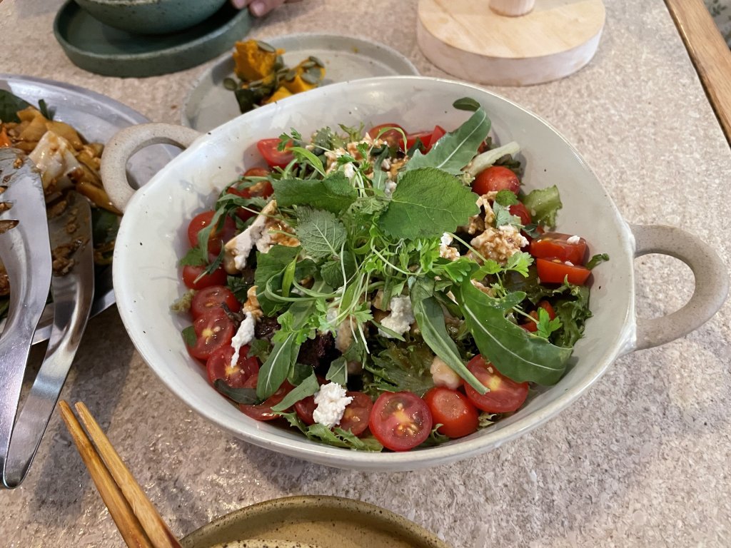 事實上,當朋友約吃蔬食時,老朋友久別重逢的喜悅彌補了筆者對於「吃素」的失落。直到推開那扇低調卻厚實的木門後,心裡的驚呼聲就沒停止過。門內外的不同世界、低調發光的菜單和自帶光芒的餐具,讓衆人的話題離不開這間店。好不容易驚喜退去,剛要開啓的「老友好久不見」模式,又被陸續端上的佳餚破壞,話題隨之環遊亞洲。老友好久不見能在這樣葷素皆歡、話題豐富的環境敍舊,有個意猶未盡的結束,同時開啓了下次尋「蔬」的起點。