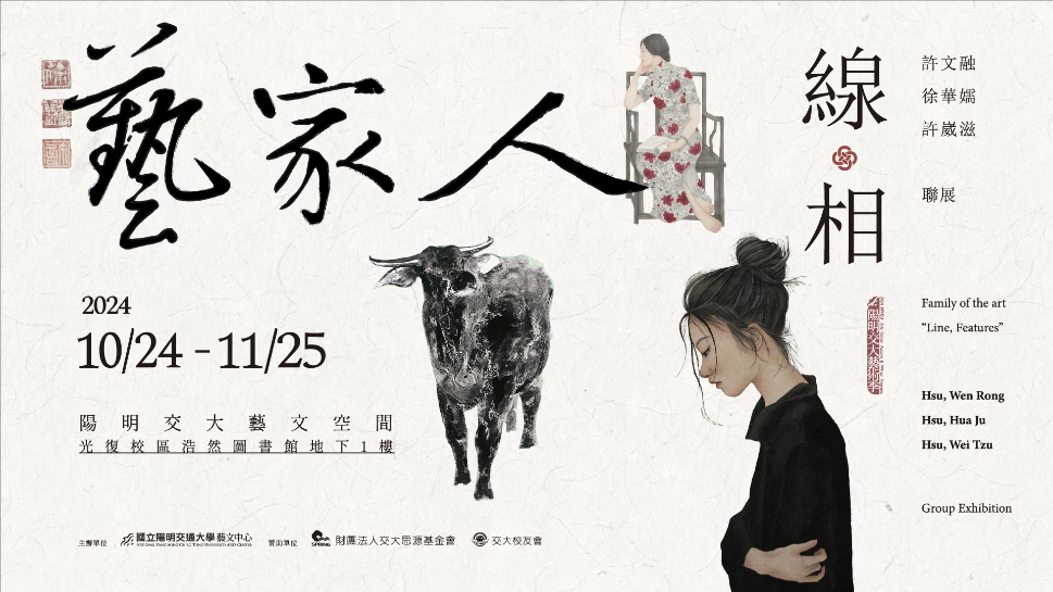 藝家人─「線‧相」聯合藝術展,正於國立陽明交通大學藝文中心展出。由真正是一家人的藝術家許文融、徐華嬬和許崴茲第二次聯合展出各自的創作。