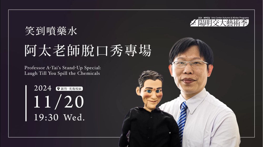 參與本次脫口秀專場前,有幸與老師一同錄製podcast節目,得以更深入的了解老師與脫口秀的連結,以及創作段子背後的理念。在一次因緣際會下老師認識了一位脫口秀演員,兼之平時對脫口秀的好奇,使他一腳踏入這個領域。從起初參加比賽常常敬陪末座,到後來破繭而出開始成為常勝軍,這中間老師付出了超乎想像的努力。有一次參加吳宗憲所主持之「綜藝大熱門」節目時,竟脫穎而出獲得冠軍,而博恩的一句「其實,你也可以在小巨蛋辦一場自己的個人專場」,更成為這次老師在交大舉辦個人專場的起源。
