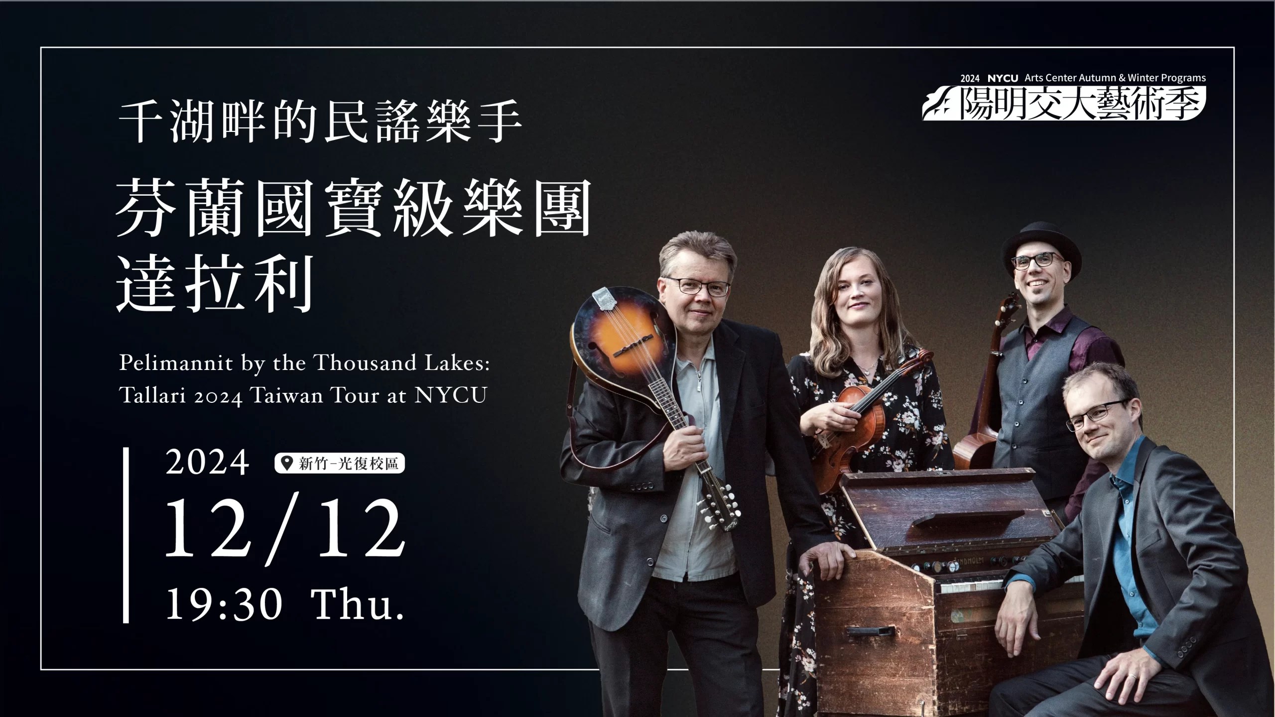 時序入冬,演藝廳外風聲凜冽,裡頭卻是精彩紛呈的音樂盛宴。芬蘭國寶級民謠樂團達拉利(Tallari)以一場飽含情感與歷史深度的演出,點亮了北歐民謠時光隧道中的一盞盞燈。四位才華洋溢的樂手──Arto Järvelä、Sampo Korva、Katri Haukilahti和Esko Järvelä則展現了精湛的技藝與絕佳的默契,重現芬蘭民謠的多元魅力,在這個夜晚留下一抹屬於千湖之國的動人顏色。