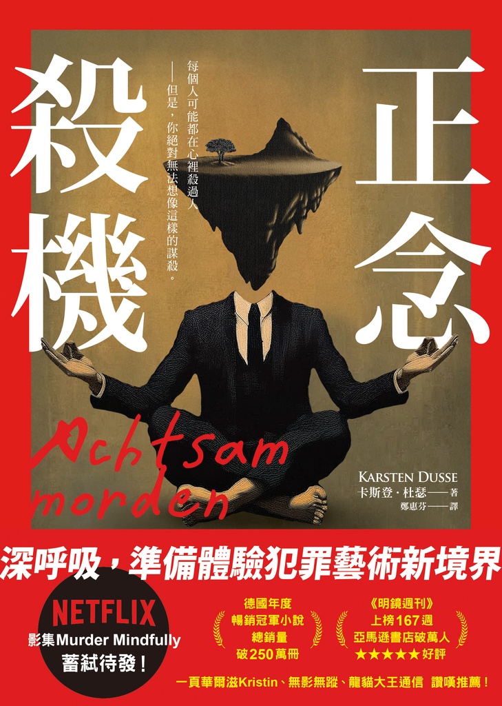 《正念殺機》應該是今年筆者看過最有趣的一本小說,書名本身就透露出一種矛盾感。「正念」這種看似正向的心理學玩意,怎麼想都覺得很難跟「殺機」聯想一起。然而,卡斯登.杜瑟卻巧妙地將兩者結合在一起,寫出一部看似荒誕,卻又充滿哲理的犯罪故事。這部2019年出版的小說,除了暢銷外,也很快被NETFLIX改編為影集,於今年推出,不難看出,這部故事自有其獨特魅力。推薦給所有不排斥長篇故事的讀者朋友,尤其是喜歡犯罪懸疑、黑色幽默情節的讀者,特別不能錯過。