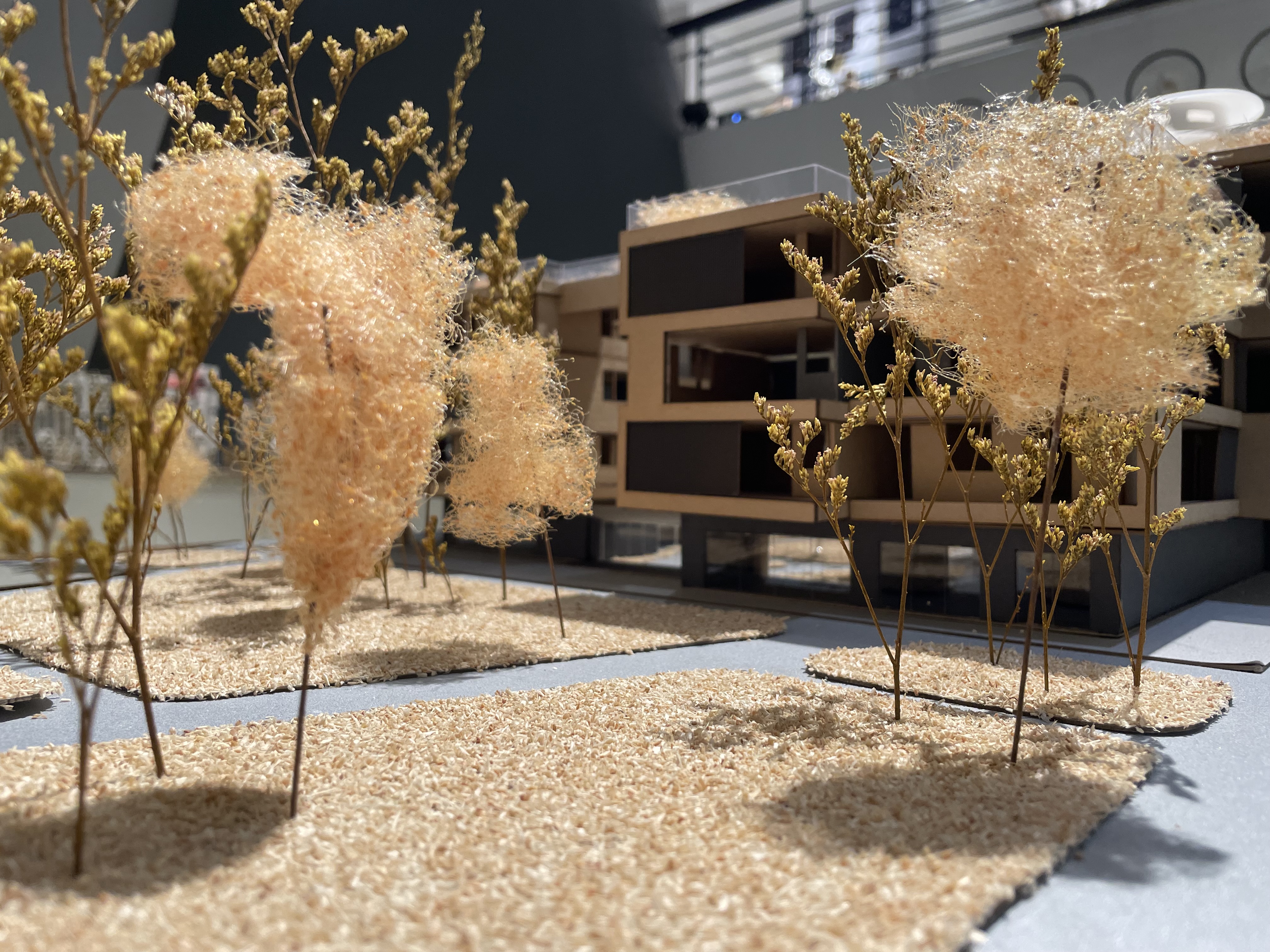 除了與在地的風景進行連結,建築物也承擔著融合人文與生活的責任。秉持著這樣的創作理念,許多結合了當地人生活的建築創作應運而生。「自然境界」刻畫出了時區交錯的住商混和模式,將靜態的寢室與嘈雜的衛浴、客廳隔開,讓竹科工程師下班時,能夠享有安靜舒適的休息空間。「搭把手的共居生活」則描摹出當高齡化社會逐漸來臨,當年輕人期望就近照顧家中長輩時的理想生活空間。相較於左側較為現代化的房屋,右邊則為上一個時代的平房,兩者之間貼心的利用空中廊道相連通,不但達成了就近照顧的要求,更保持了兩代之間的距離,避免了同一個屋簷下的摩擦。於是,在創作者細膩的安排下,一棟棟房子不再只是由冰冷的水泥堆砌而成,而成為了有溫度的個體,在與人進行互動的同時,更成為了生活的一部分。