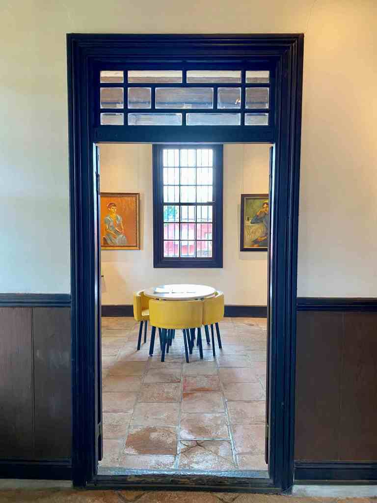 慢慢踱步進入紀念館大門,首先會看到一大片翠綠的草皮,中間以工整的紅磚道鋪設通往正前方的主屋及位於右手邊劉啟祥旅法返台後特地打造的畫室。推薦先停在這裡幾分鐘,給自己一個機會去體驗某個日子,院落中那份陽光煦煦,如畫一般的靜謐美好。