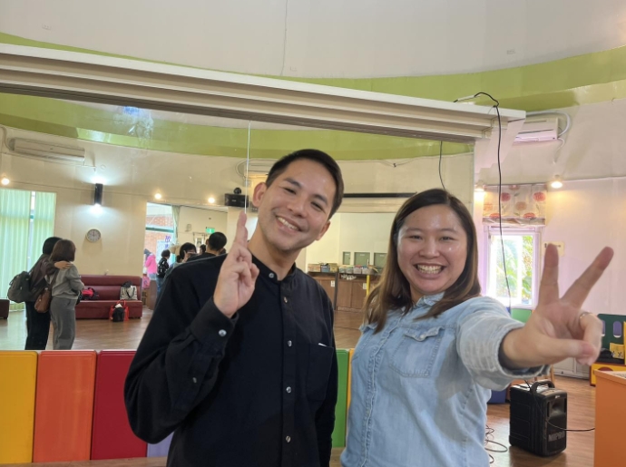 課程結束後,同學們紛紛上前提問。我靜靜排在最後。輪到我時,我說:「我沒有問題,只是想再次跟老師表達感謝。」因為這堂課,點燃了我在說故事中閃閃發亮的動能。我還特地和老師再拍了一張合照。老師疑惑的說:「上次不是拍過了嗎?」我笑嘻嘻的回:「因為上次的我,眼神還沒有閃閃發亮呀!」